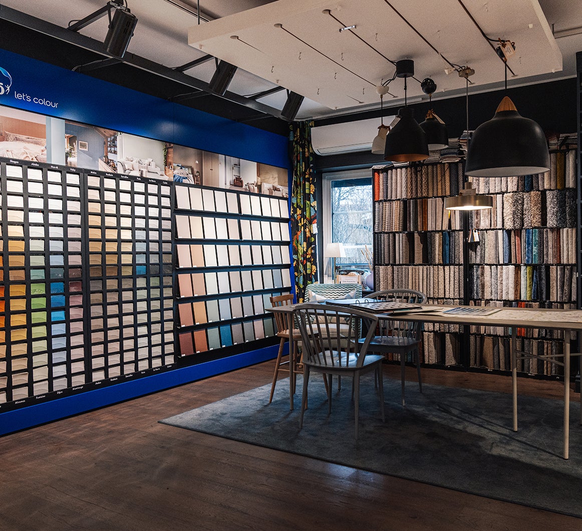 Med stark betoning på idéer och inspiration har vi ambitionen att ta hand om och inspirera dig och hela Sollentuna till nya tankar om färgsättning och inredning. Välkommen in till vår butik!