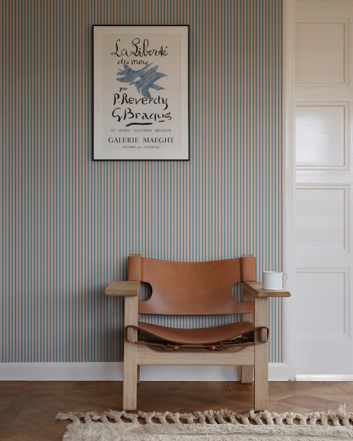 Cool rand med mjuk textil karaktär i exklusiva färger som klär väggarna på ett lyxigt, stilfullt sätt. Linn, Sky Blue, kommer i härligt blått och rött mot en ljus bas. Designad av Karolina Kroon.