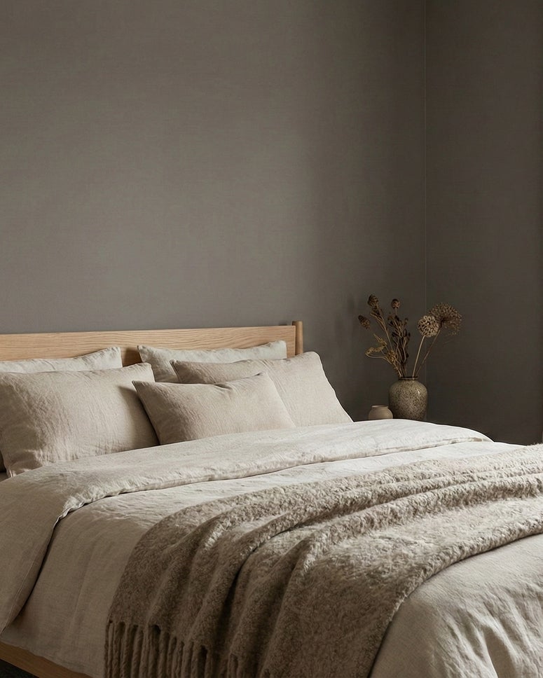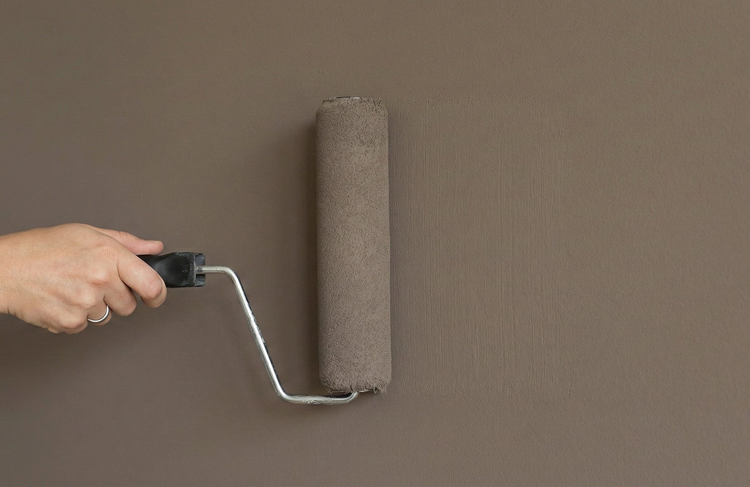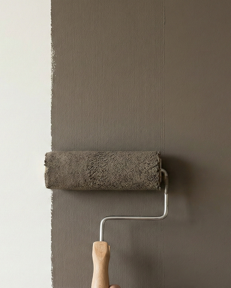 En djup gråbrun ton som skapar en lugn och ombonad atmosfär i rummet och ger väggarna en tydlig och självklar närvaro.