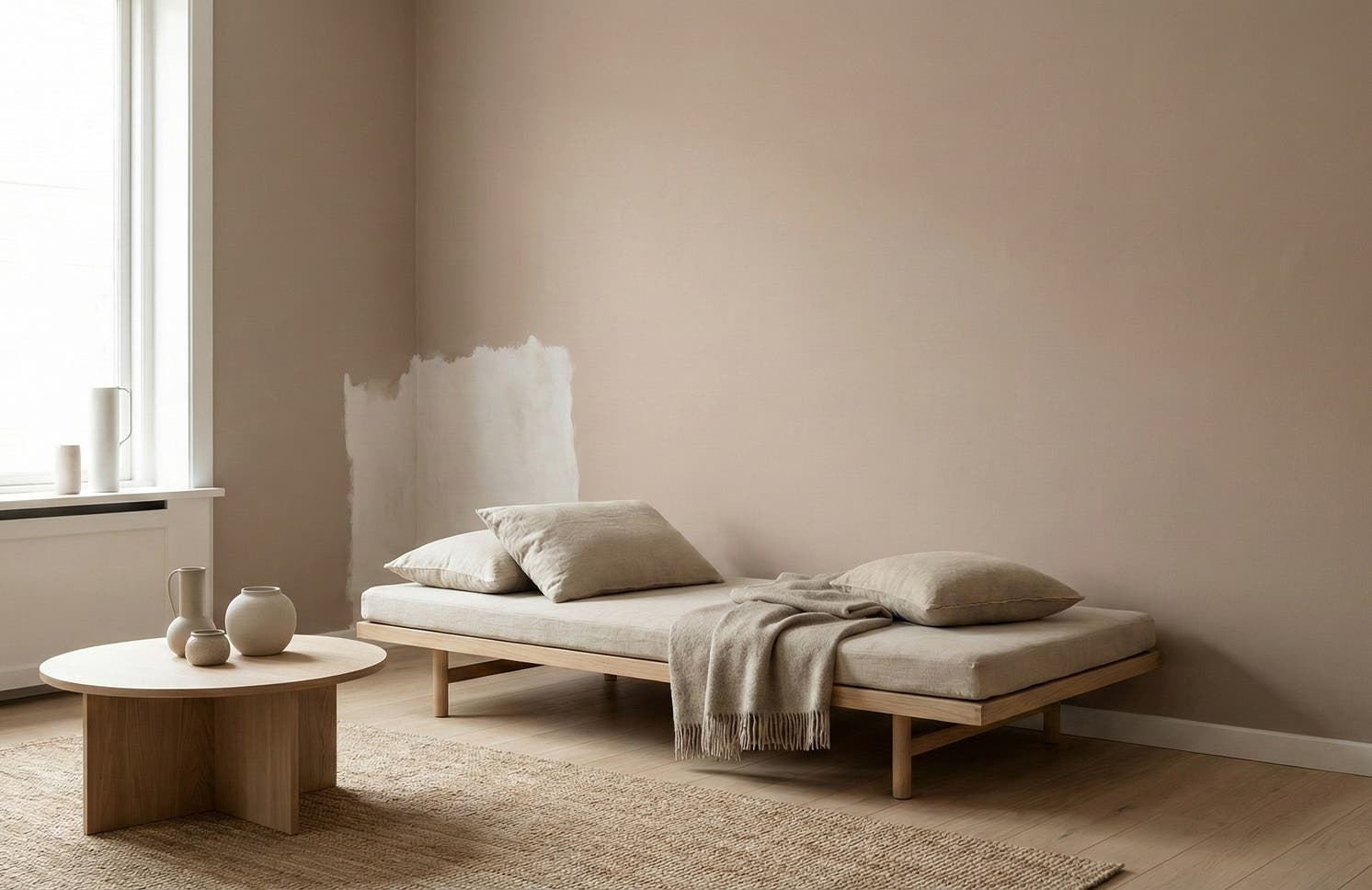 En mjuk rosé kulör som ger rummet ett varmt och harmoniskt uttryck. Rosendimma skapar en lugn och ombonad känsla och passar fint tillsammans med ljusa material, trä och textilier.
