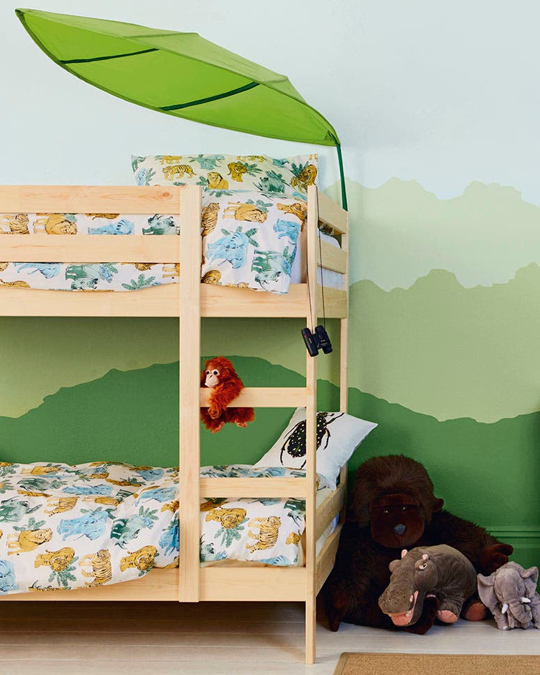Jotun Green tea, 8493 (panel) och Sheer grey, 12077 (vägg)