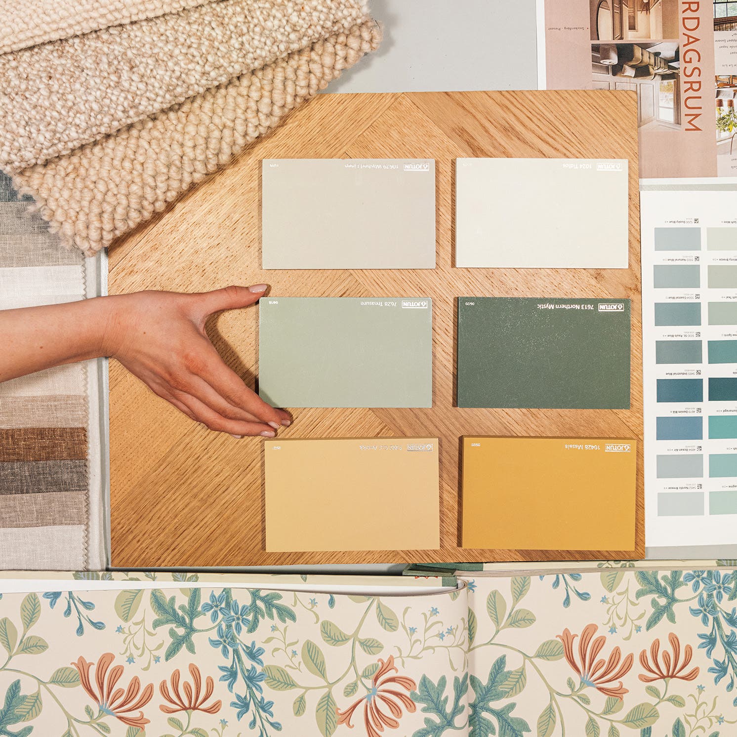 Det kan vara svårt att hitta rätt bland tapeter, färger, mönster och material. Att få till en snygg helhet kräver kunskap om varumärken, kollektioner och mönster. Men även ett tränat öga för vad som passar ihop och harmonierar med det du redan har i ditt hem.